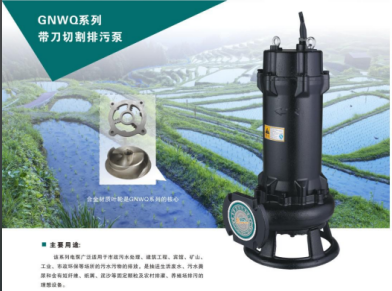 GNWQ系列帶刀切割排污泵。葉輪具有獨特的螺旋式結構及帶鋒利刀口設計,在保證永利性能的高效且超過同類產(chǎn)品的同時,兼具卓越的切割能力,能夠保證稻草,棉,布等廢棄物切碎后完全排出,不堵塞。