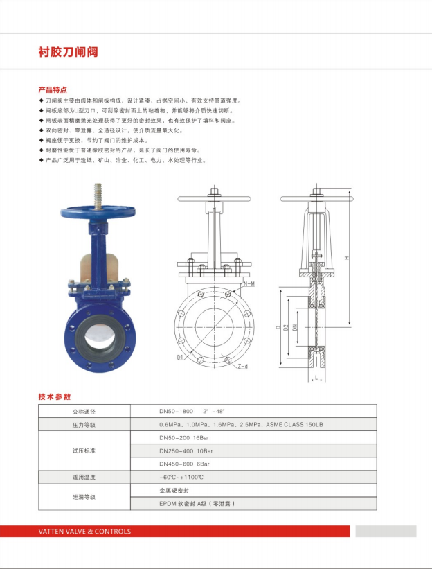 襯膠刀閘閥。刀閘閥主要由閥體和閘板構(gòu)成,設(shè)計緊湊,占據(jù)空間小,有效支持管道強度。閘板底部為u型刀口,可刮除密封面上的粘著物,并能夠?qū)⒔橘|(zhì)快速切斷。閘板表面拋光處處理獲得了更好的密封效果,也有效保護了填料和閥座。雙向密封,零泄漏,全通徑設(shè)計,使介質(zhì)流量最大化,閥座便于更換,節(jié)約了閥門的維護維護成本,耐磨性能優(yōu)于普通橡膠密封的產(chǎn)品,延長了閥門的使用壽命。產(chǎn)品廣泛用于造紙、礦山、冶金、化工、電力、水處理等行業(yè)。
